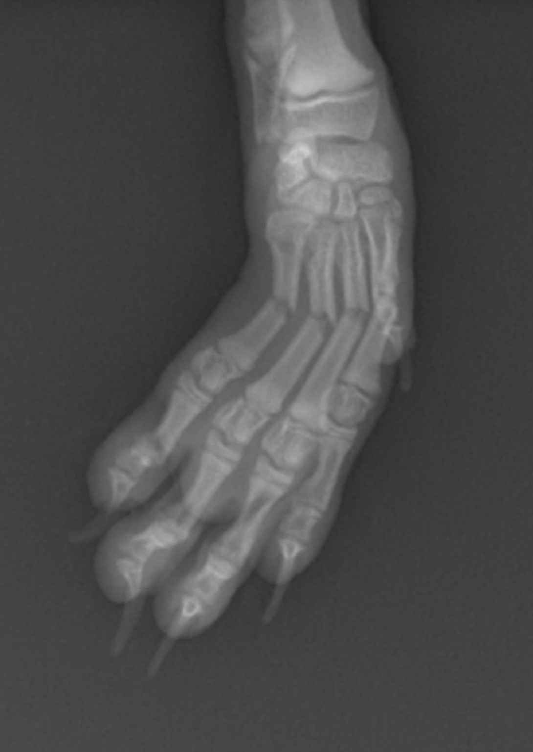 経過をみることもありますが、この場合は外固定で回復する見込みは低く、手術を行いました。